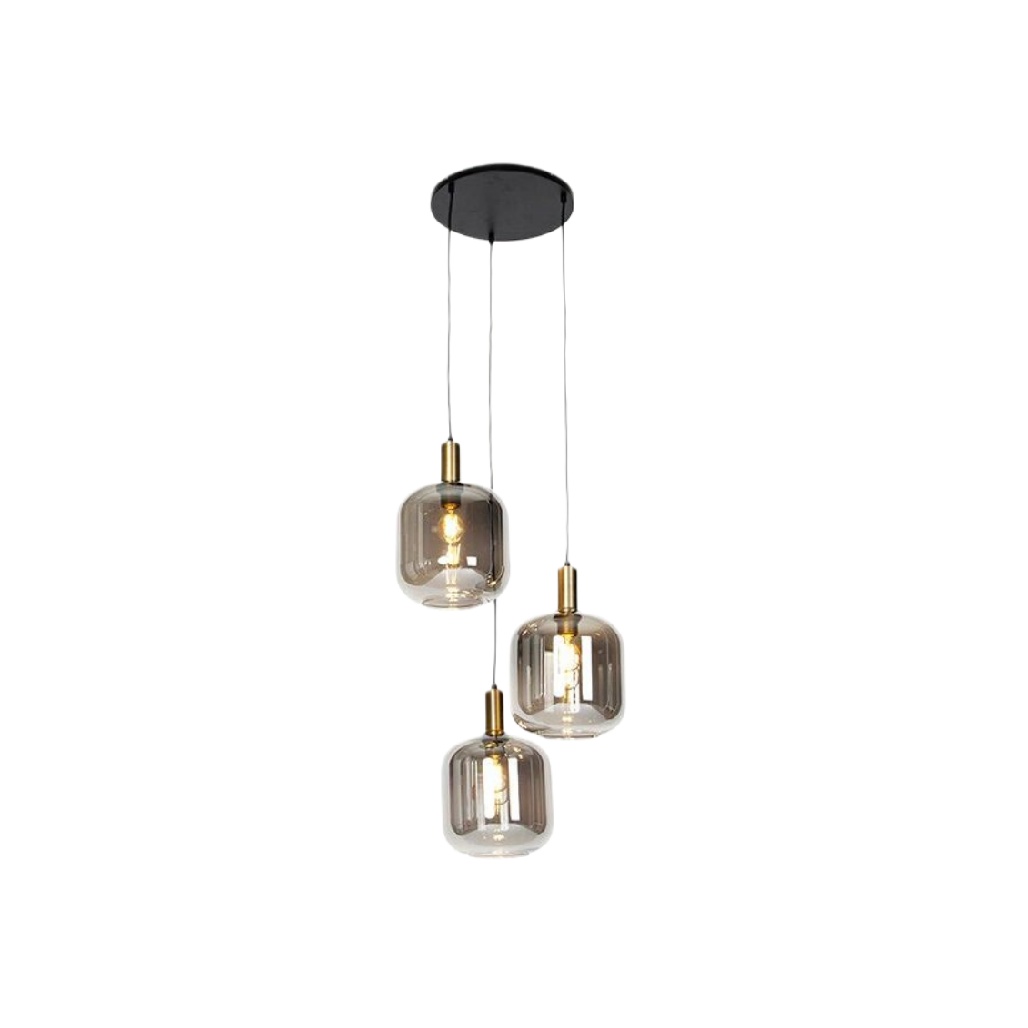 Suspension moderne en verre fumé avec trois luminaires dorés